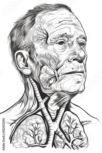 An illustration of a senior man with his head turned to the side. Suitable for various projects