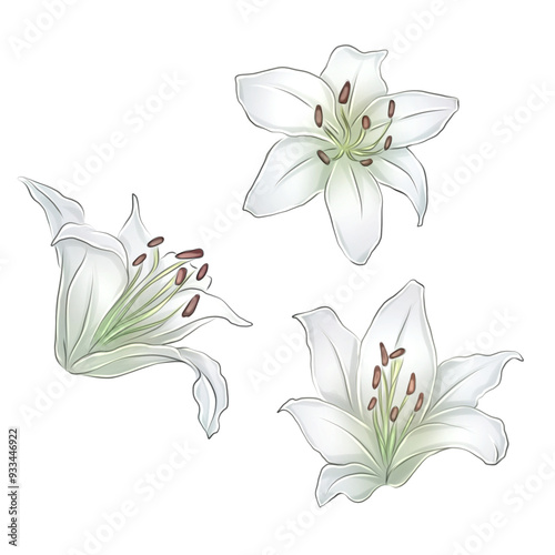 An illustration of lilies, showcasing their elegant petals in a range of colors, often with intricate details and delicate shading.