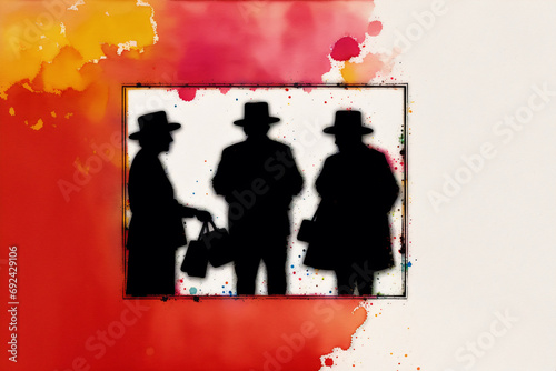 An illustration of old people. Watercolor paint. Happy family spending time together.Age Diversity. Generative AI