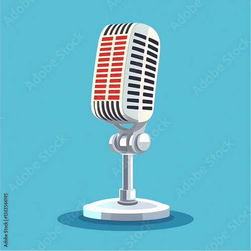 An Illustrative Image Of A Vintage Silver Microphone On A Stand