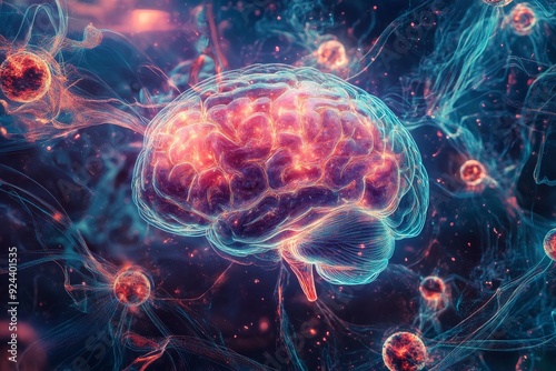 an image that conveys the idea of a healthy brain. something focused on a glowing brain centered