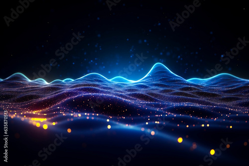 An impressive 3D rendering that features a dynamic wave abstract background. Network and big data concept.
