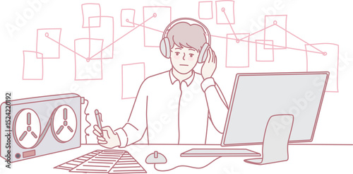 An individual engaged in data visualization and media analysis, working within a contemporary office environment