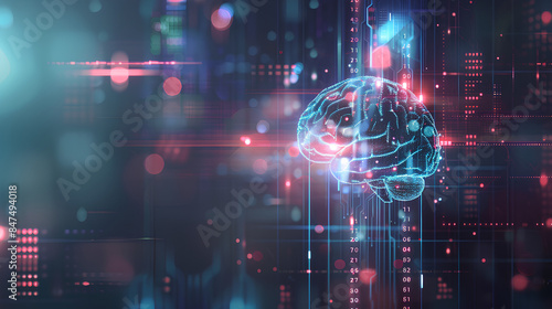 An infographic showing the process of machine learning, machine learning, blurred background, with copy space