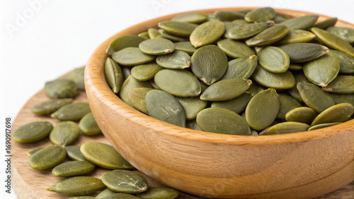 An ingredient shot of fresh pumpkin seeds ready for cooking, garnishing, or snacking.