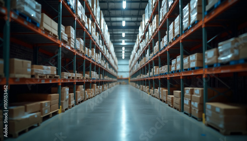 An interior of a cold storage warehouse with shelves of temperature-sensitive goods