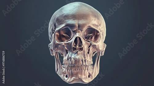 An intricate and highly detailed illustration of human anatomy, focusing on the human skull and skeletal structure. This artwork combines scientific precision with artistic flair,
