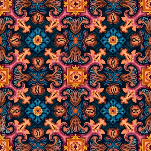 An intricate floral pattern with vibrant colors that creates a sense of artistry and visual appeal