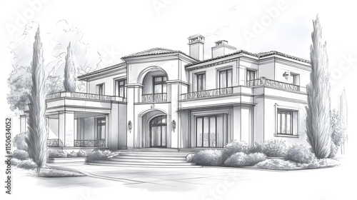 An intricate sketch of a luxury villa designed by a legendary architect.