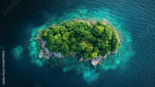 An Isolated Lush Green Island Surrounded By Ocean Waters