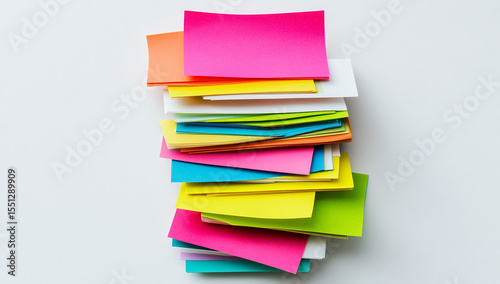 An isolated pile of colorful sticky notes arranged on a clean white background