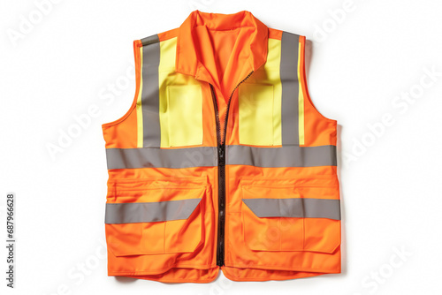 An isolated safety vest with reflective stripes emphasizes its modern design and importance in safeguarding workers and traffic personnel.
