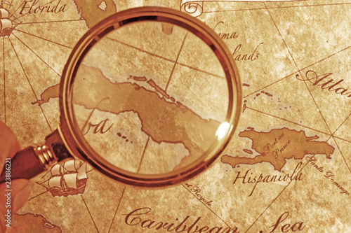 An Magnifier on a Treasure map background