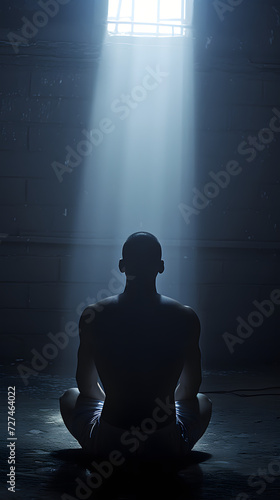 an man sitting beside the bright light from the room