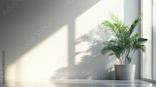 An office interior with a clear white wall for mockups next to a potted plant, showcasing a modern clean design. Generative AI