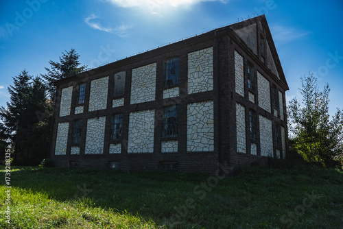 an old abandoned granary or mill built of stone and brick