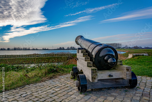An old artillery gun ready for battle at the fort by the sea