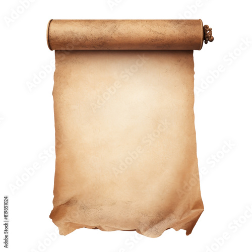 an old paper scroll isolated on transparent background, cut out, PNG.