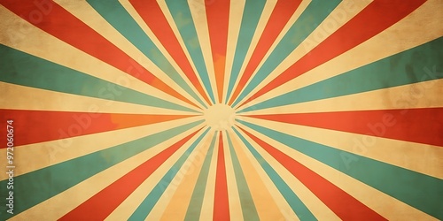 An old-fashioned sunburst pattern in orange and white with a grungy, textured