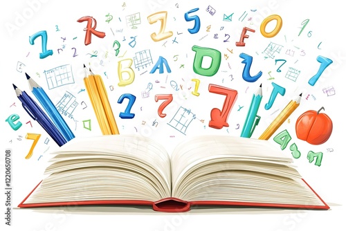 An Open Book Filled with Educationally Inspiring Elements Soaring Above