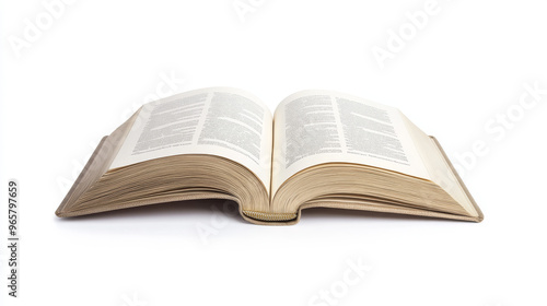 An open book with clear text displayed on a white background, emphasizing knowledge, literature, and reading, with pages slightly curved.