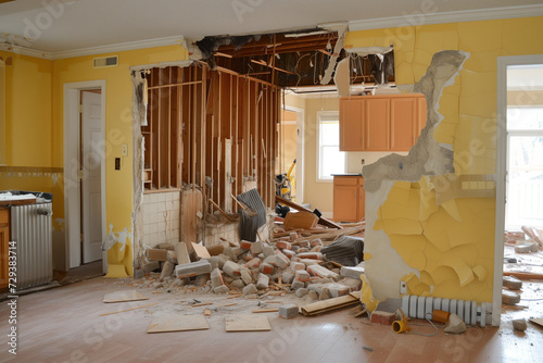 An open view is created by demolishing walls as part of home renovation transformation AI Generative