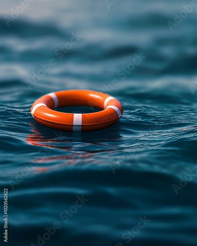 An orange life ring floats on calm water, symbolizing safety and rescue in aquatic environments.