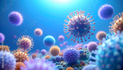 An organic cluster of floating viruses appears.