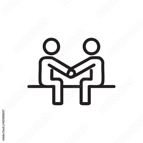 An outline icon of two people sitting and shaking hands.