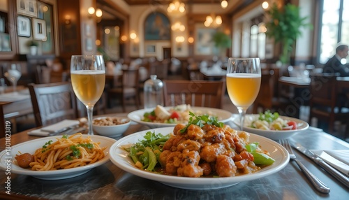 an Pleasant meal in a restaurant setting, featuring well-presented dishes and an inviting dining atmosphere.