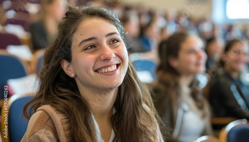 An upbeat image of a Caucasian university male student from France a college lecture hall