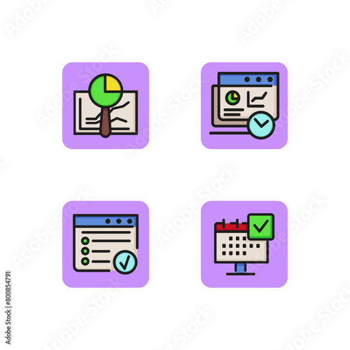 Analysis of documents line icon set. Exploring charts, reports, and other data. Business research concept. Vector illustration for web design