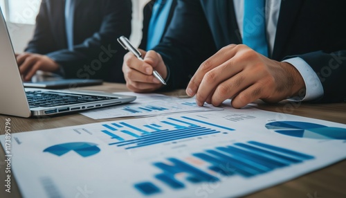 Analyst Performing Data Analysis And Bi Dashboard On Computer Monitor: Business Team Analyzing Financial Data With Fintech In Corporate Office For Marketing And Strategy Planning.