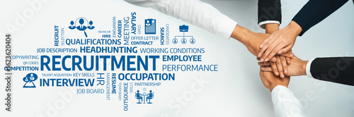 Analyst team putting hand together after successful plan of business strategy and marketing. Teamwork friends and unity cooperation in office with stack hands. Panoramic shot. oratory Amity