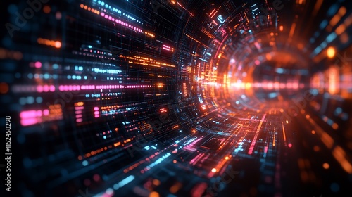 Analytics illustrated a flowing data stream showcasing information processing and metrics visualization in a futuristic digital environment