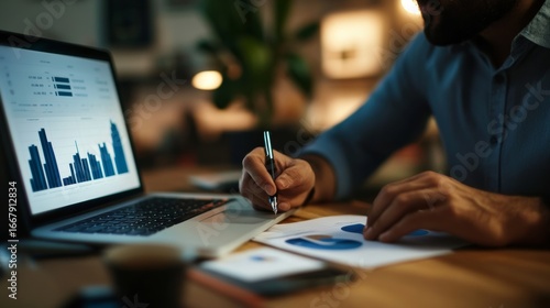 Analyzing business data and strategies office workspace digital content professional environment close-up view productivity insights