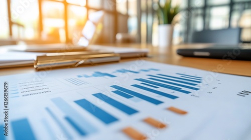 Analyzing Business Performance: Charts and Graphs on a Modern Workspace
