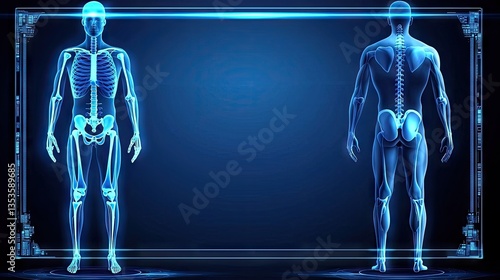 Anatomical Human Skeleton and Muscles, Front and Back View, Digital Illustration