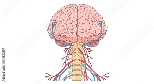 Anatomical Illustration of Human Brain and Nervous System.