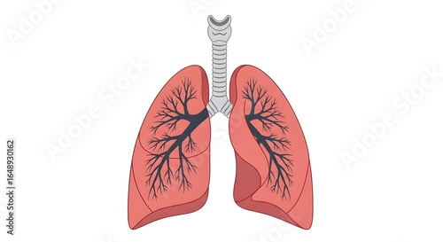 Anatomical Illustration of Human Lungs and Trachea on White Background.