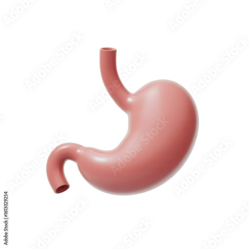 Anatomical illustration of the human stomach in a realistic 3D model on a plain black background