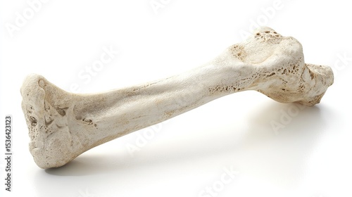 Anatomically accurate 3D rendering of isolated human femur bone with realistic cortical and trabecular structure, shown in bent knee position context, symbolizing orthopedic education and skeletal ana