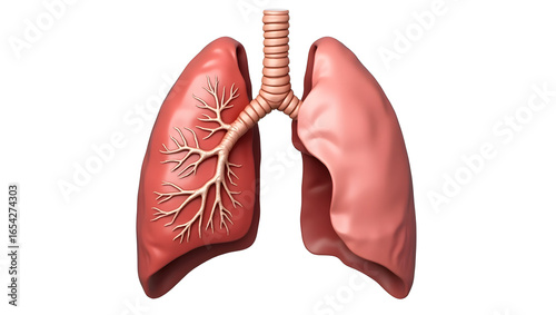 Anatomy & Physiology A posterior view of the human lungs, isolated on white, with hilum and bronchial tree exposed for thoracic anatomy and surgery planning