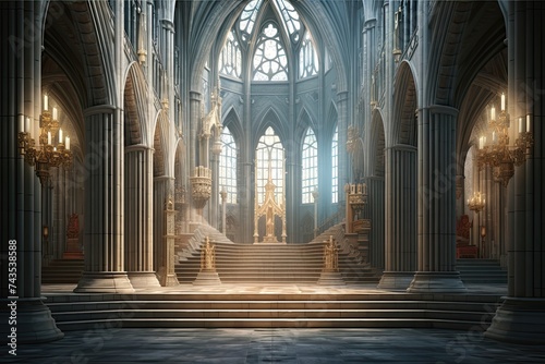 Ancient Architecture: 3D CG Illustration of a Gorgeous Gothic Cathedral Interior with Stunning