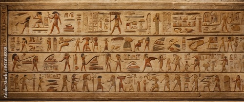 Ancient Egyptian Relief Carving Depicting Figures and Hieroglyphs