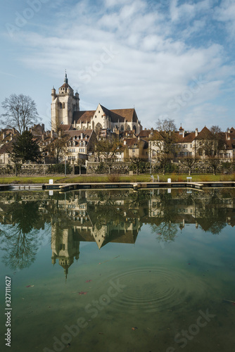 Ancient French classic medieval town with river in front, Dole, Burgundy, France