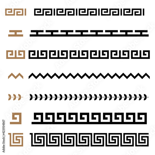 Ancient Greek seamless ornament constructor borders frames pattern set