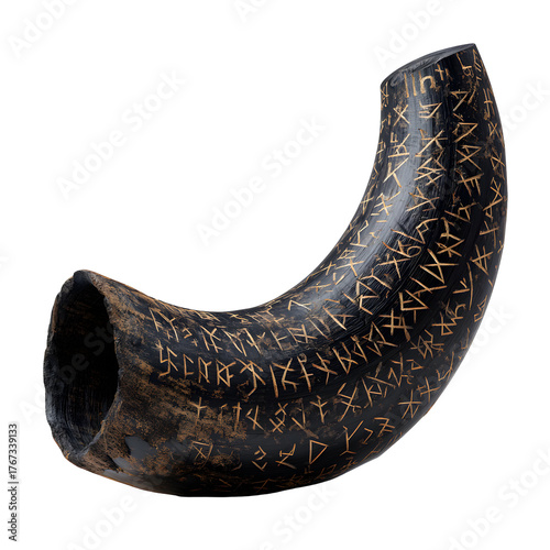 Ancient Horn of Heritage: A captivating artifact, bearing ancient inscriptions on its curved surface, whispering tales of bygone eras and the enduring spirit of human history.
