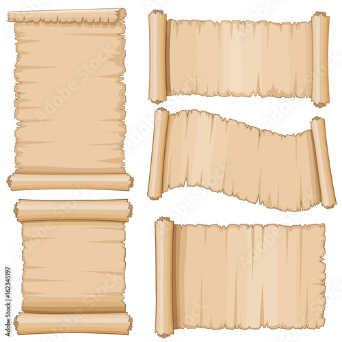 Ancient parchment vector scrolls. Aged scrolling blank paper