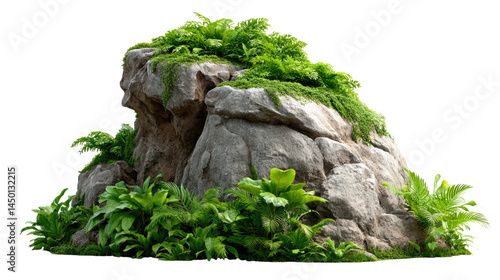Ancient Rock Formation: The majestic rock formation, a testament to the power of nature, is draped in vibrant green foliage, evoking a sense of age and natural beauty.